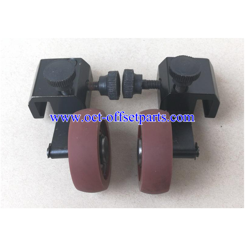 This is a good quality replacement rubber wheel for Komori 26 and 28 series machines. The dimensions are OD 47mm, Thickness 15.4mm, and ID 9.0mm. Manufactured in Taiwan.
