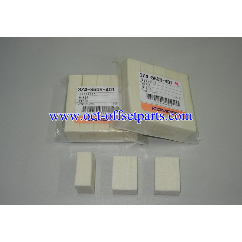 This is an original new Komori machine Wiper, part number 374-9608-401. This genuine Komori component is sold in a bag of 10 pieces (10pcs) and is made in Japan.