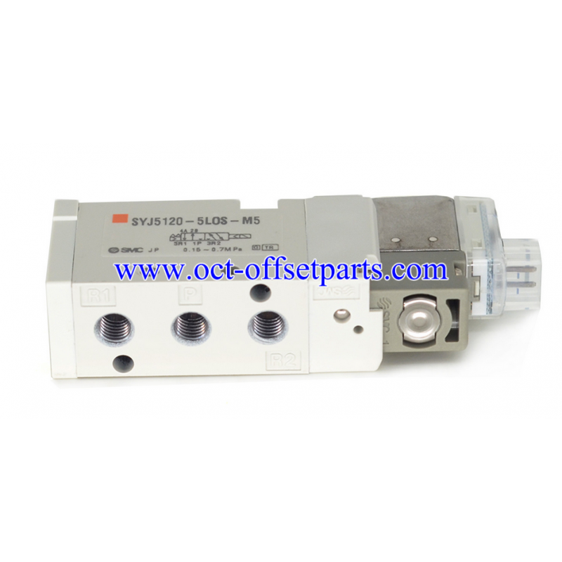 This genuine new SMC Valve, model number 5YJ5120-5LOS-M5, is a high-quality replacement designed to be fully compatible with Komori printing machines. It serves as a direct substitute for Komori part numbers 3Z0-5203-710 and 3Z05203710.