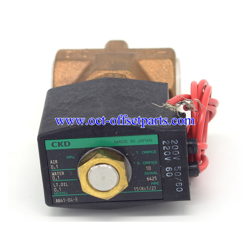 This is an original new Komori machine valve, part number AB41-04-8. This genuine, Made in Japan component ensures reliable performance for your printing machine.